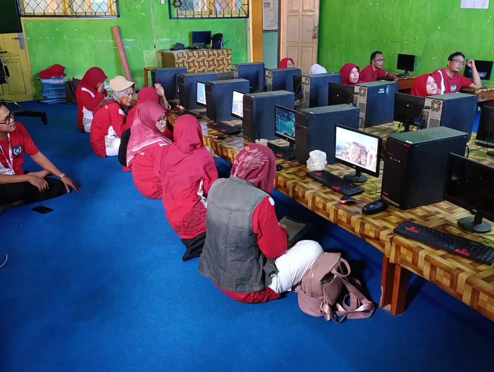 Para peserta diajak langsung mempraktikkan dasar-dasar koding sederhana menggunakan perangkat yang tersedia di Laboratorium Komputer 1. Suasana pelatihan berjalan interaktif, di mana para guru saling berdiskusi dan mencoba membuat simulasi logika sederhana yang relevan dengan materi ajar mereka masing-masing.